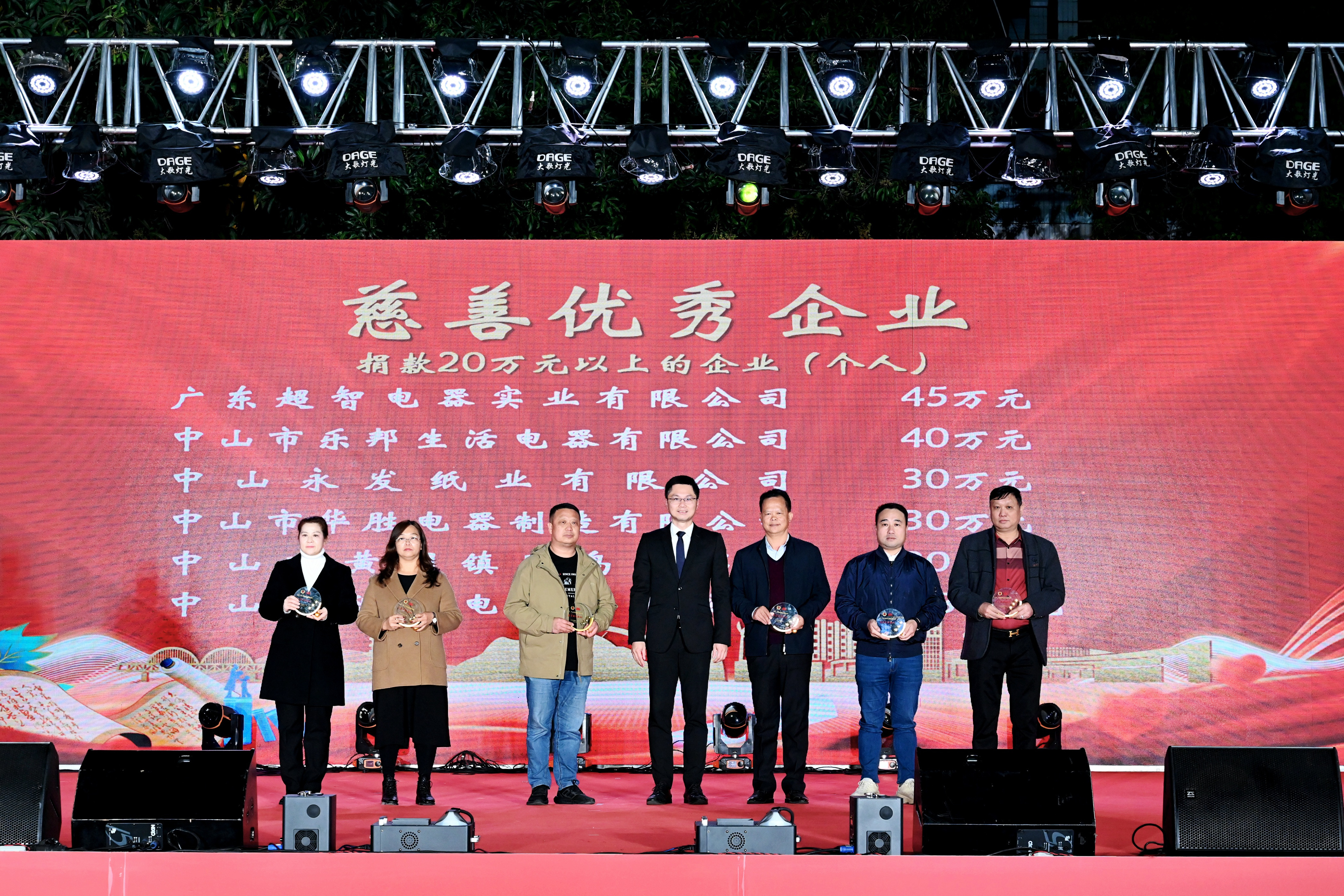 近日,黃圃鎮(zhèn)中心廣場張燈結彩,喜氣洋洋,一場別開生面的活動在這里舉行--賀元宵金色大地音樂會暨慈善萬人行答謝晚會。在這個充滿喜悅和感激的夜晚,甜美公司榮獲兩項殊榮:《慈善優(yōu)秀企業(yè)》紀念杯和《“造月計劃”骨干企業(yè)》紀念牌匾。